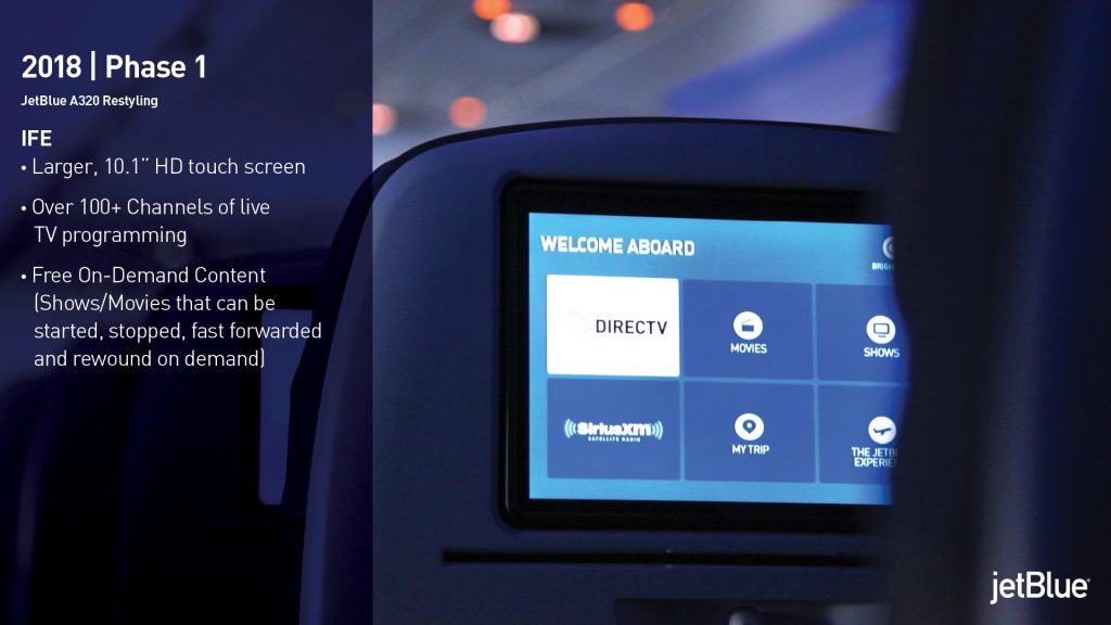 The first phase of the project will see JetBlue match the industry standards that its current product is falling behind in. Most airlines have adopted mood lighting, adjustable armrests and touchscreen televisions. However, the second phase of the project, slated to begin in 2019, will see JetBlue not just match industry standards, but surpass them.