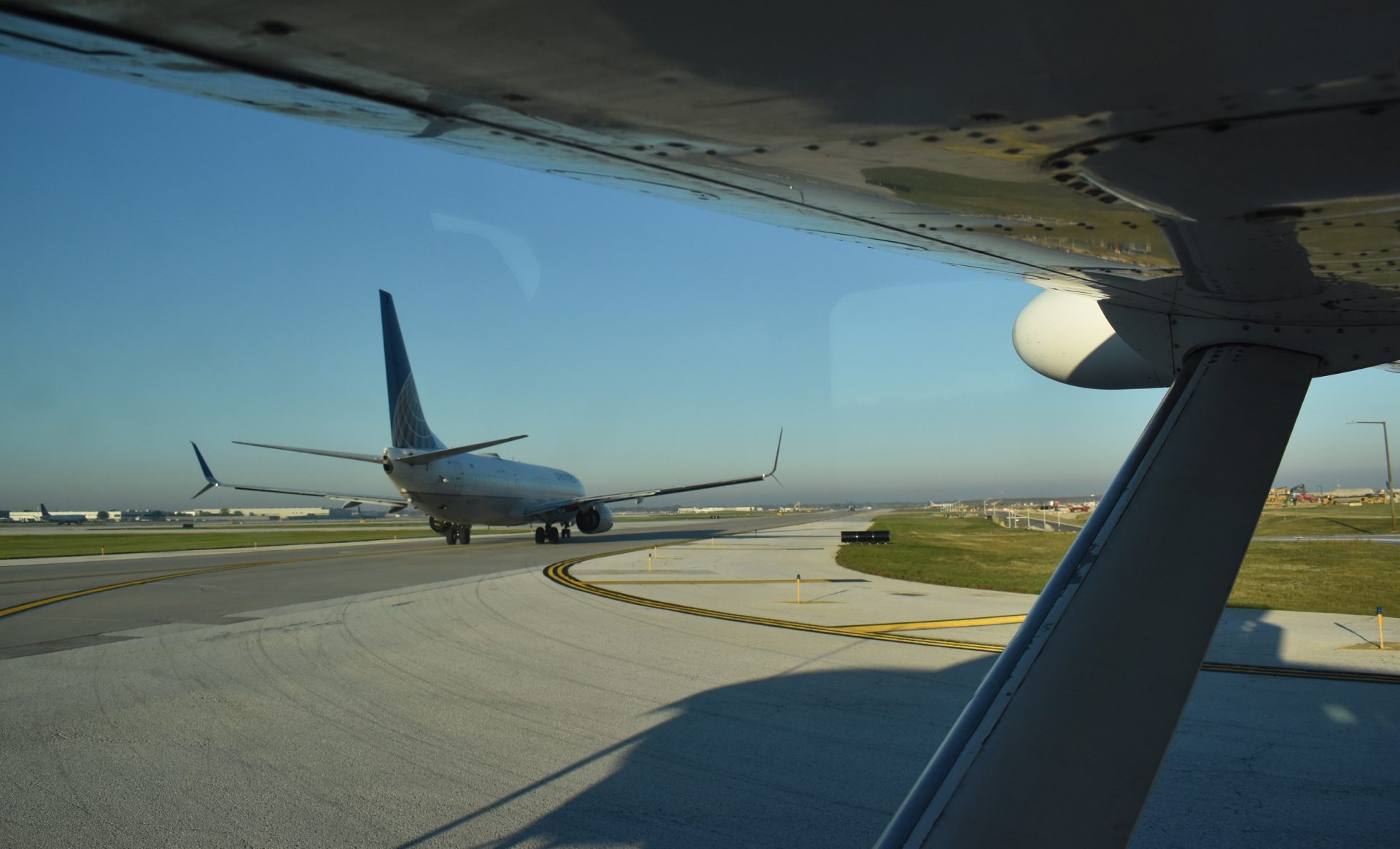 We then took off from 10L with planes taxiing on the sides of us. For those of us like myself that can’t afford those pricey helicopter spotting sessions over large airports, the slower nature of this plane makes it perfect to get those shots of planes taxiing below us, this is another benefit of having a high-wing aircraft like this.