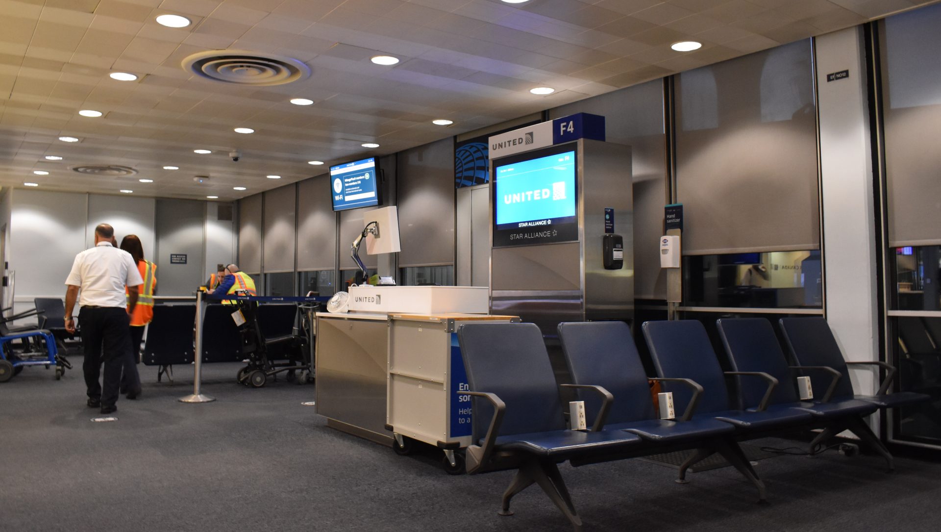 They brought us into a door on the ramp and we took an elevator ride up into the terminal and it dumped us out in the middle of a bank of United Express gates, and conveniently right next to a United flight departure board.