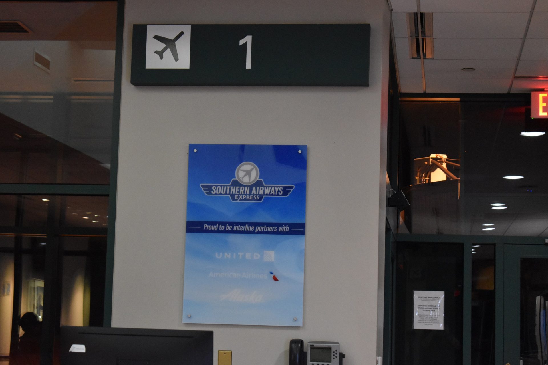 Under the Gate 1 sign, it had the Southern Airways Express logo along with the three airlines they had interline agreements with: American, Alaska and United. Passengers could check their bags to either three of the airlines going to or from Muskegon.