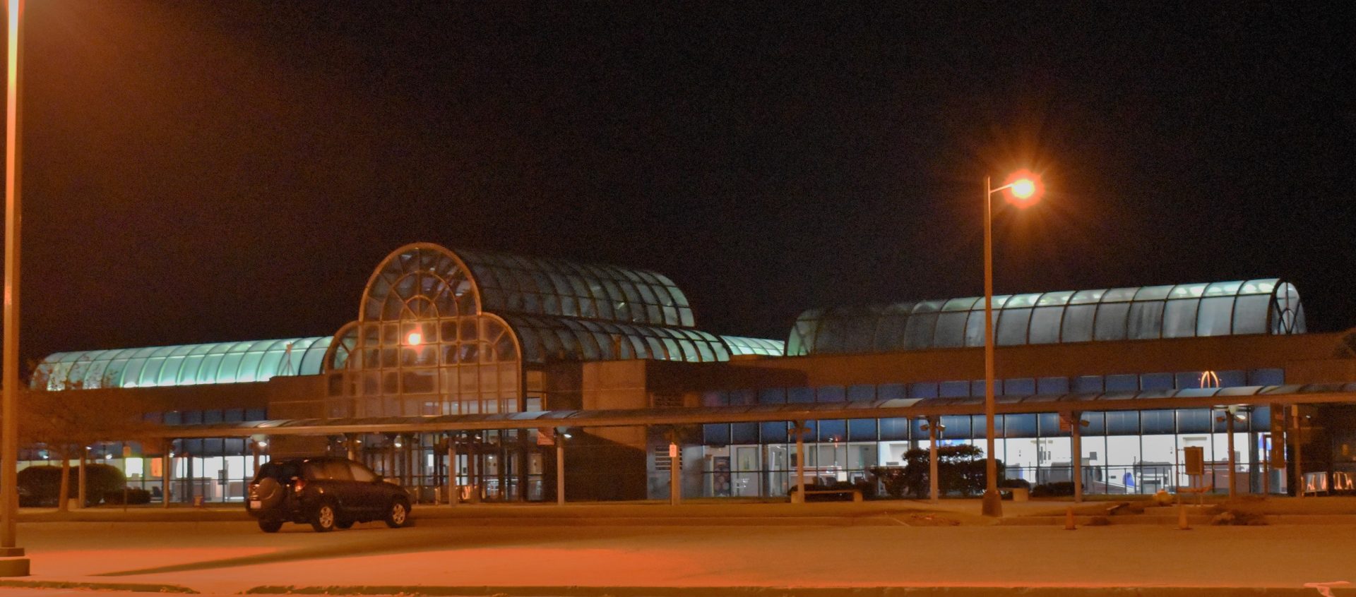 The inaugural departure from Muskegon was scheduled for 5:45 a.m. and with a departure in the early morning the doors were sure to be locked overnight, but I wanted to make sure I was first to check in, so I arrived earlier than I probably should of at 3:40 a.m. The first airline employee didn’t arrive and unlock the terminal doors until around 4:20 a.m., and the few passengers for the flight started to trickle in, six to be exact for this first flight. Even in the dark, you could see that the airport was a striking green color, and looked like something that belongs in the Wizard of Oz.