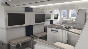 Along with the luxurious personal spaces, guest will have access to iPads, Bose headphones, free wifi across the globe, private televisions with on-demand shows and movies along with a music library, a live air traffic control listening channel, and finally, USB and power outlets for each seat.