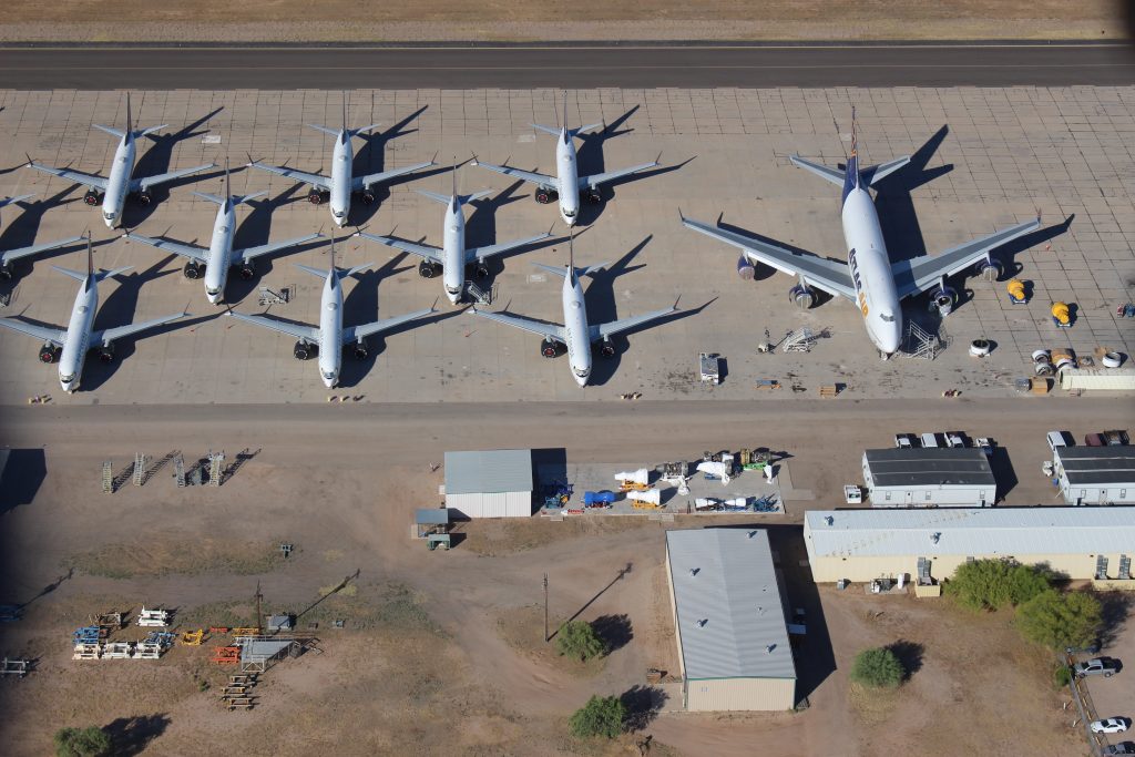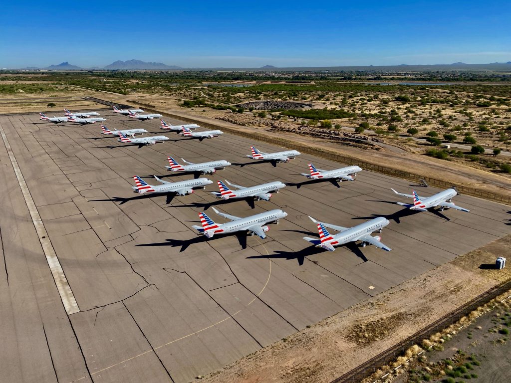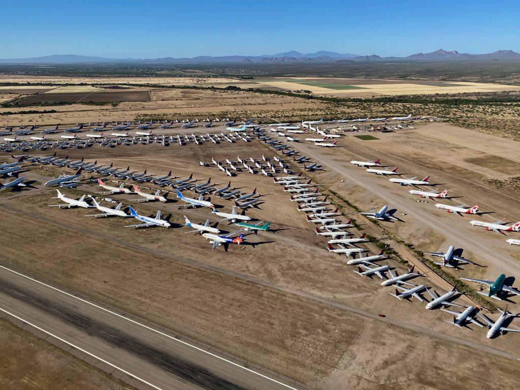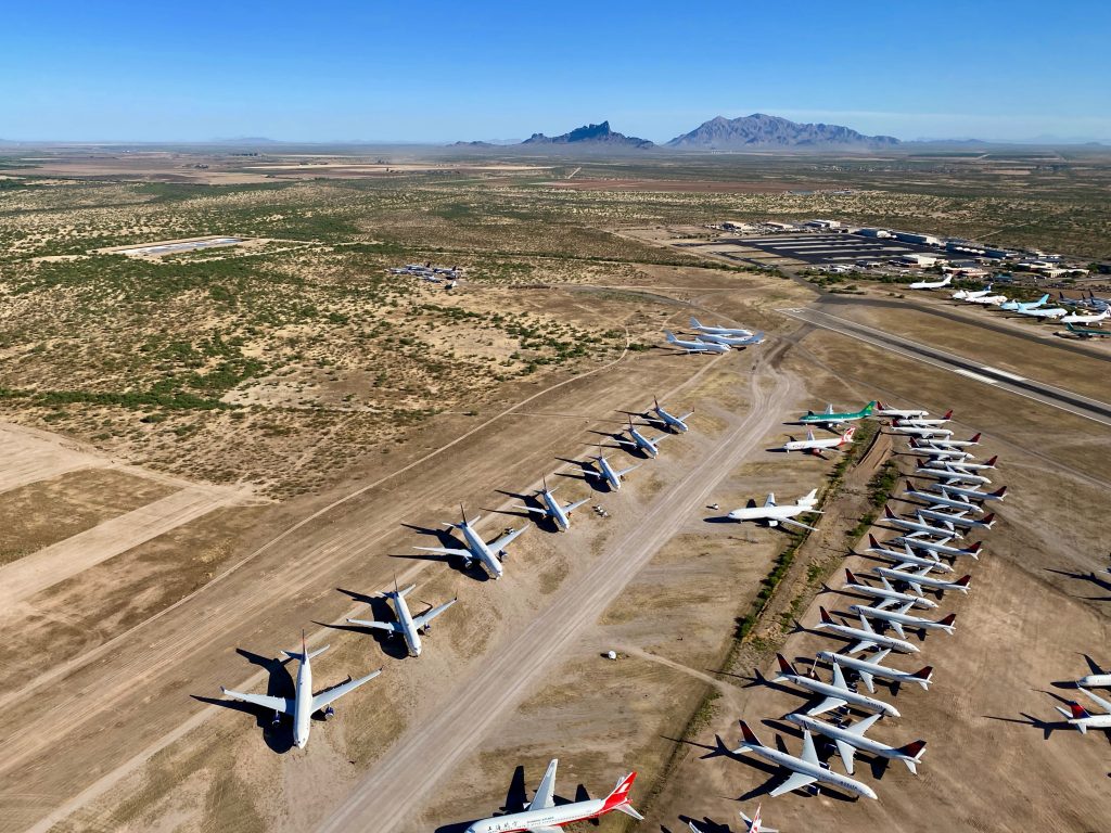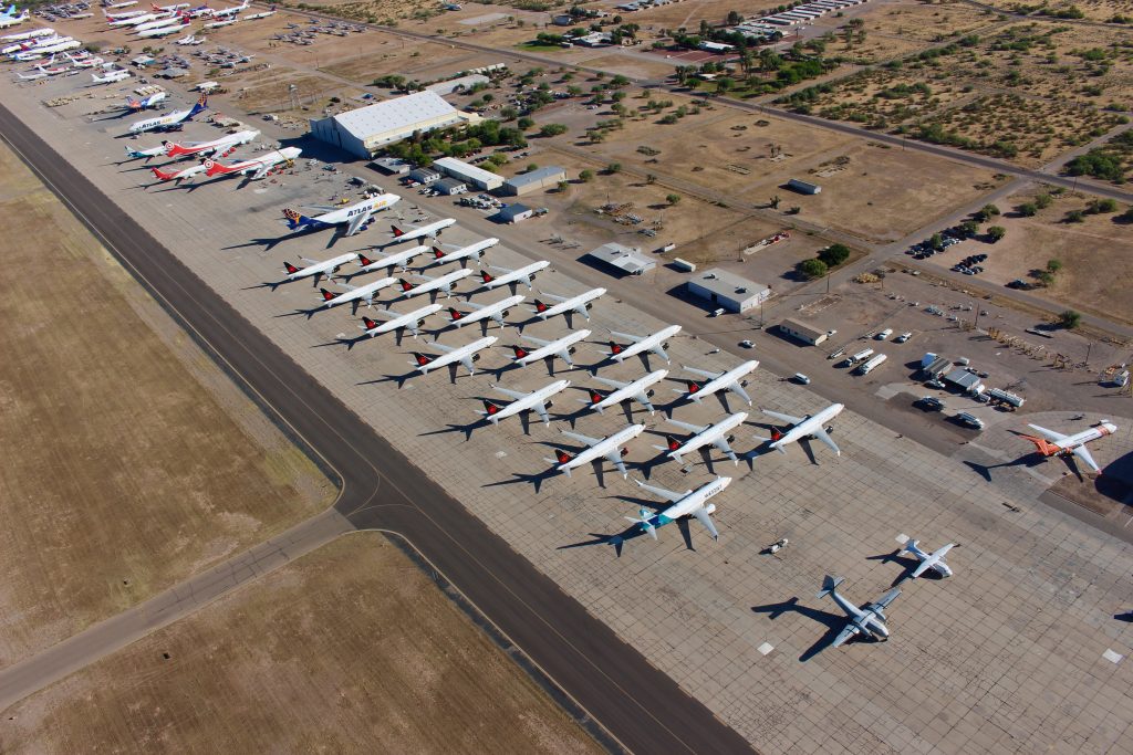 Many jets were placed into storage programs at several airports. Pinal Airpark has seen a massive surge in demand in recent months as its surrounding dry climate is ideal for long-term aircraft storage. At one point, the small airpark was seeing upwards of seven arrivals each day on its 5,000-foot runway.