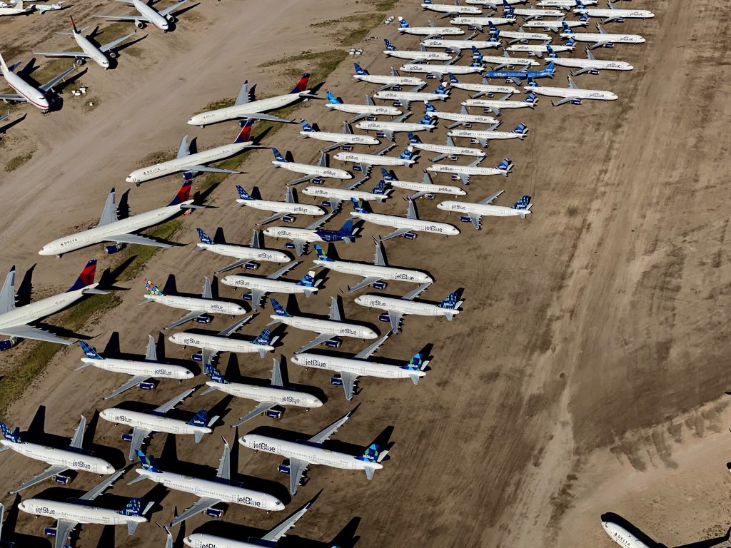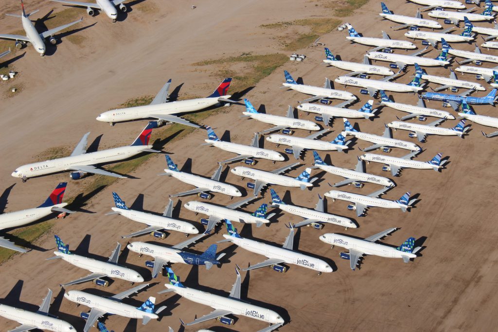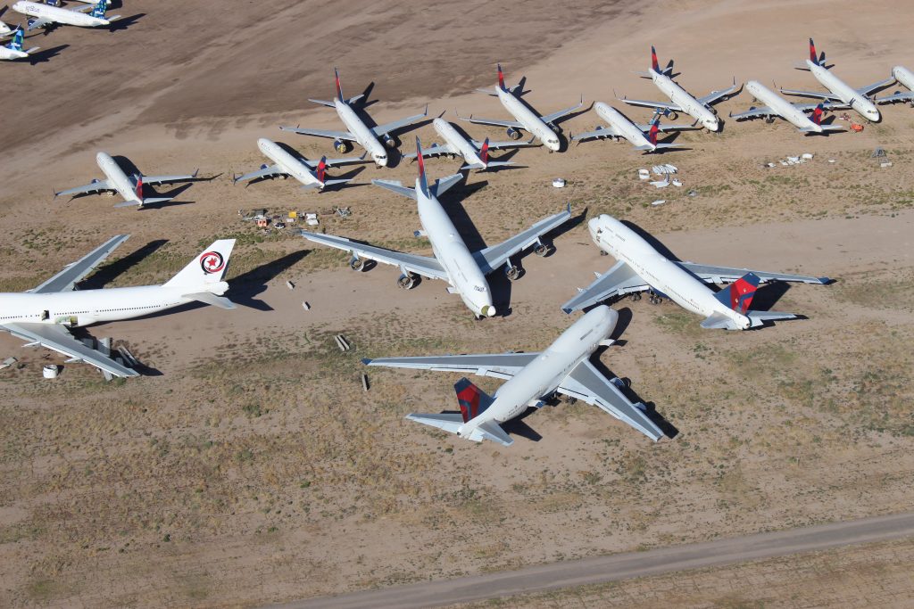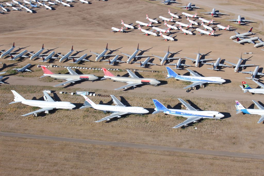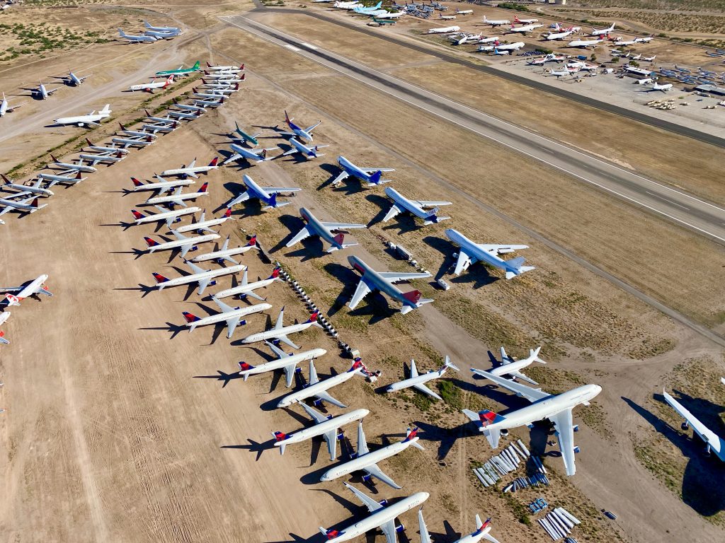 Many jets were placed into storage programs at several airports. Pinal Airpark has seen a massive surge in demand in recent months as its surrounding dry climate is ideal for long-term aircraft storage. At one point, the small airpark was seeing upwards of seven arrivals each day on its 5,000-foot runway.