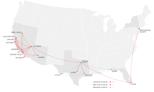 The JSX route map will now include flights to the East Coast. (Photo: JSX)