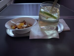 The candied papaya, toasted almonds and coconut on Fiji Airways (Photo: AirlineGeeks | Joey Gerardi)